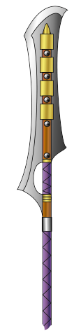 Les anvas furent les premiers à envisager l'usage de larges et longues lames sur de longs manches. Cette configuration particulière leur permettait en effet de survoler le champ de bataille en tranchant dans le tas sans trop de risque. Désormais utilisée même par les humbles piétons, surtout ceux qui aiment tournoyer sur place dans la mêlée, cette arme et son aspect menaçant ont fait fléchir bien des velléités de combat.